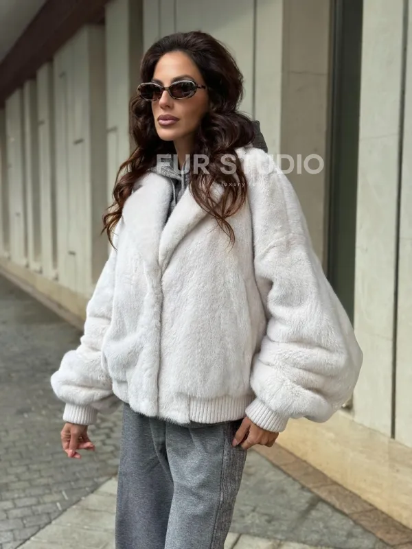 Белый норковый бомбер на резинке 102288