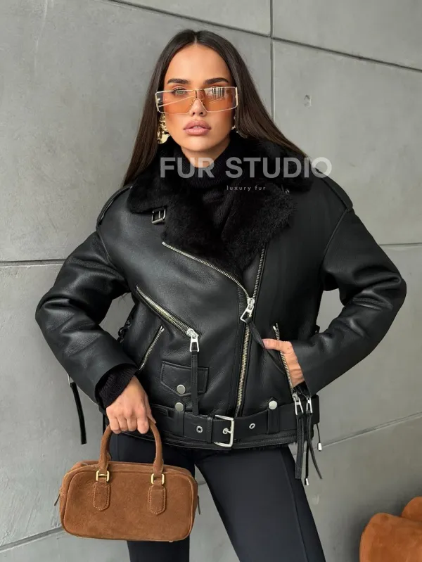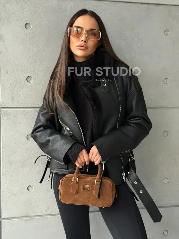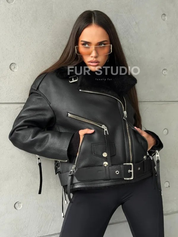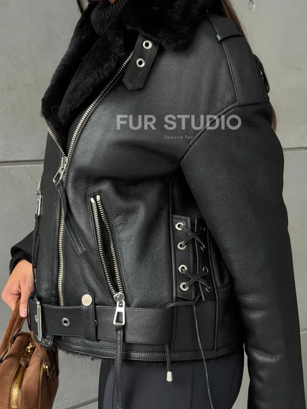 Дубленка - авиатор из натуральной овчины со шнуровкой создана для девушек, которые любят быть в тренде. Авиатор с оригинальной шнуровкой на спине вряд ли оставит вас равнодушной. Модель выглядит благородно и смотрится со вкусом. Овчина позаботится, чтобы вам не было холодно, даже в суровую зиму. Длина оптимальна и комфортна при вождении машины.
