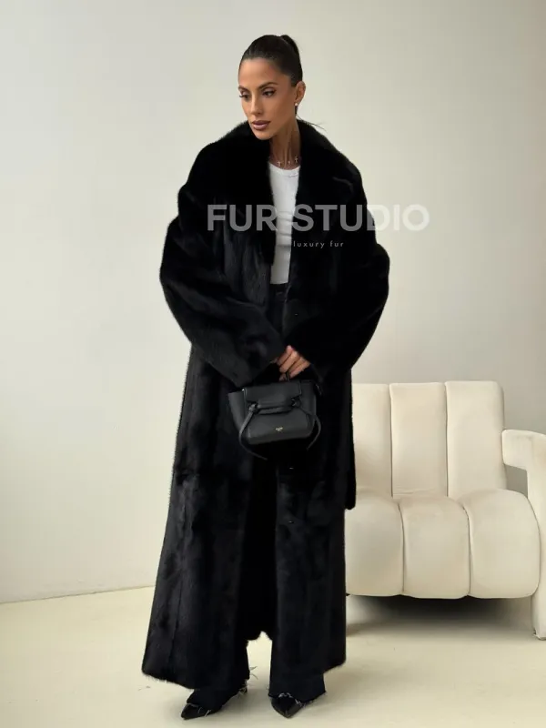 Мех данной шубы аукционная норка , цвет черный. Предлагается в размерах от 42 до 50. Длина модели 125-130 см, что выгодно подчеркивает фигуру девушек. Эта модель идеально подойдет для девушек и женщин, предпочитающих роскошные натуральные меха.