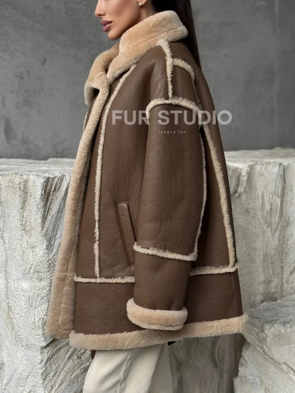 Коричневая женская дубленка 102393
