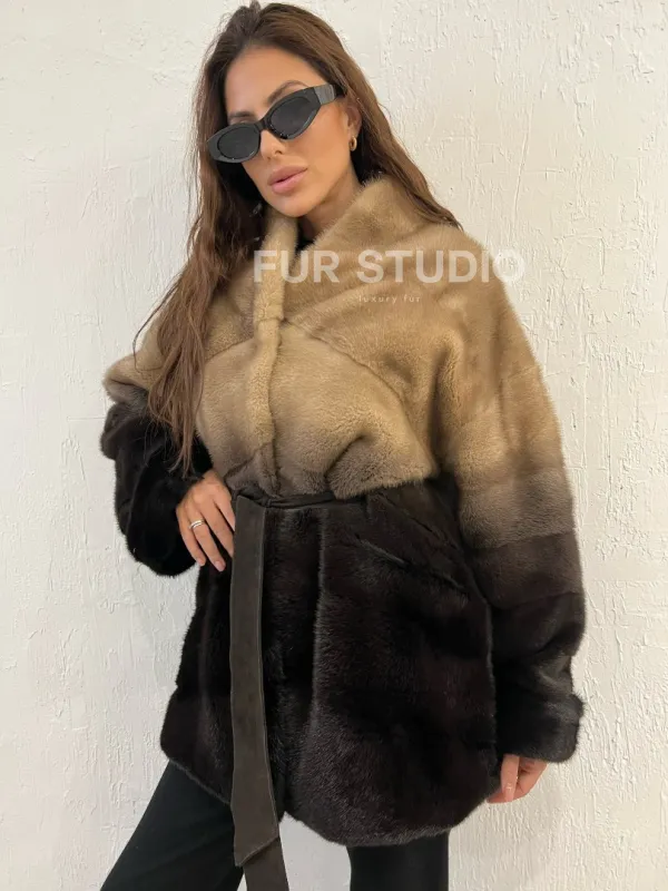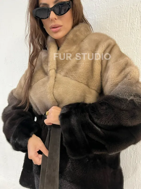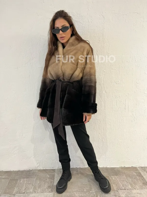Короткая шуба из меха норки - эффект деграде 100389