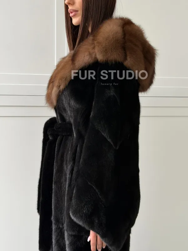 Норковая шуба фасон баллон с капюшоном куница 100518
