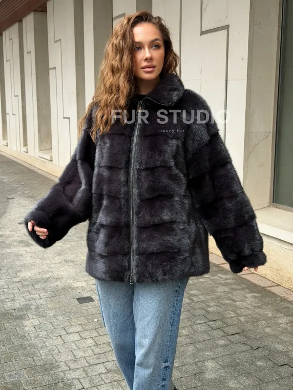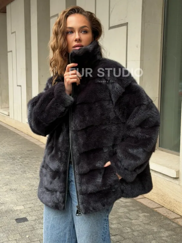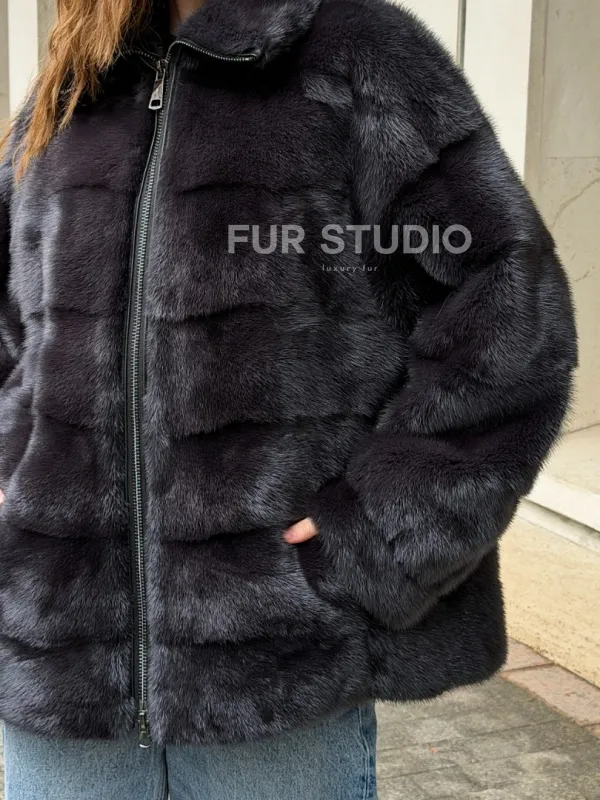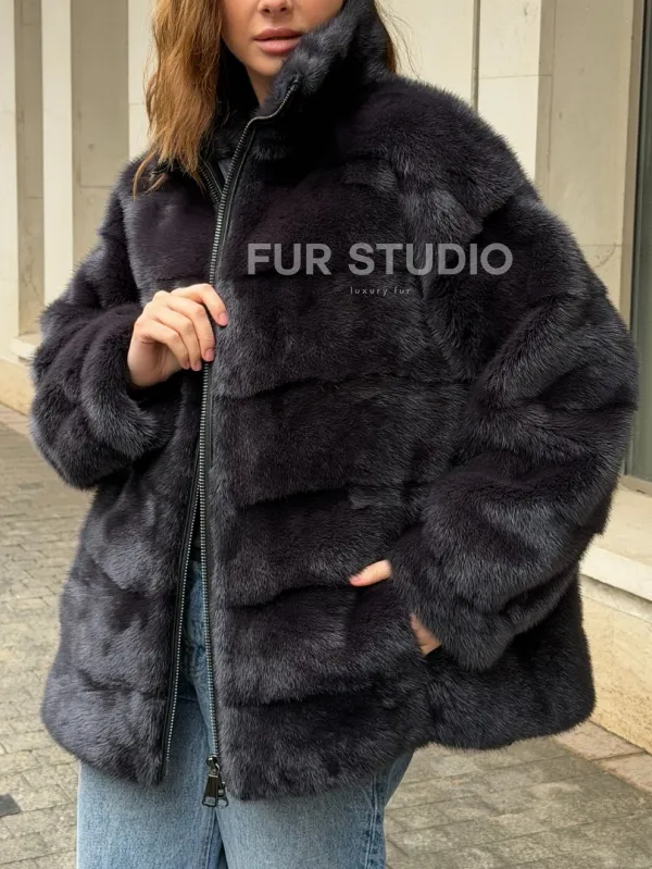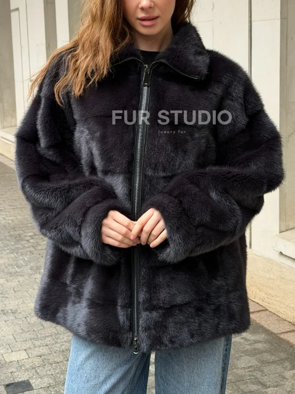 Норковая куртка на молнии - графит 102570