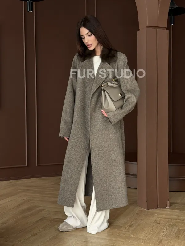 Пальто с воротником из соболя 102914