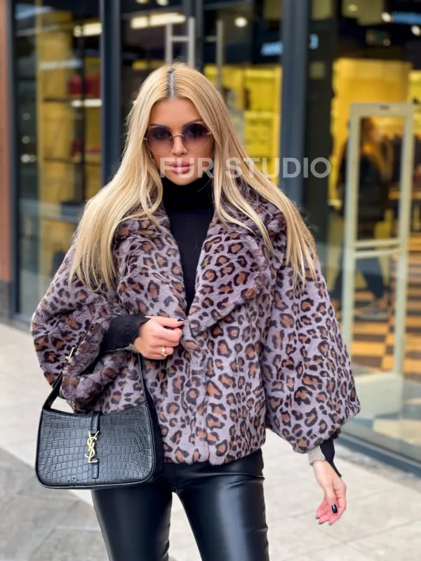 Полушубок из экомеха леопард 100181