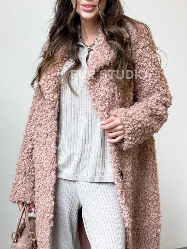 Шуба из экомеха в цвете пудра - прекрасный выбор современных девушек. Удлиненная модель зрительно увеличит ваш рост и бережно согреет в непогоду. Нежный цвет придаст образу воздушность, и даст возможность почувствовать настоящей принцессой. Изделие отлично сочетается с разными стилями от классики до вечерних нарядов. Удобные пуговицы можно застегнуть, если владелице станет прохладно.