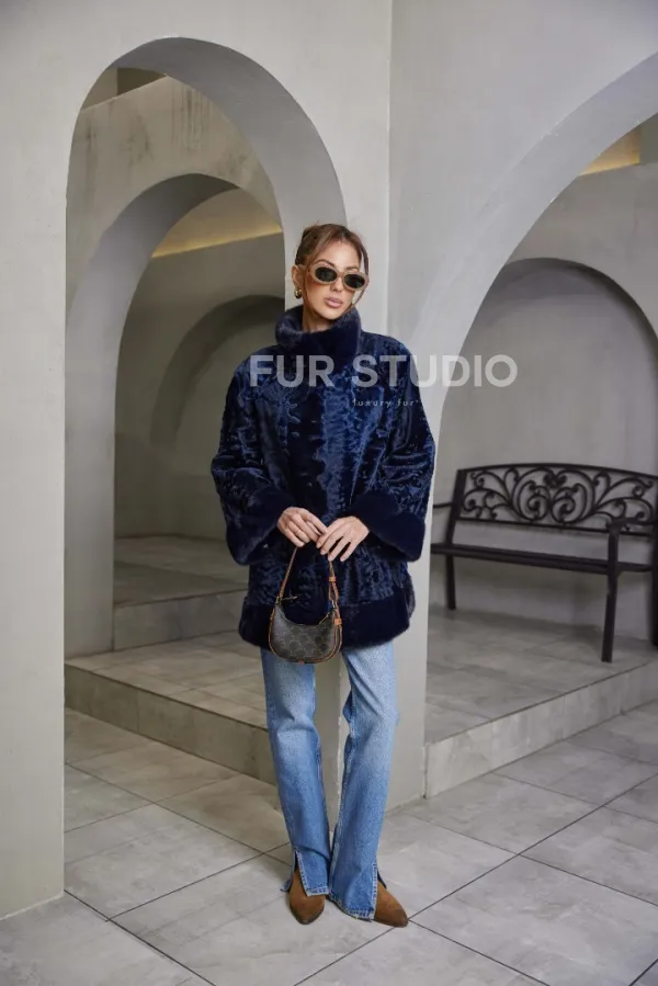 Шуба из каракульчи стойка воротник - цвет синий доступна для покупки в нашем шоуруме Furs Studio в . У нас так же есть доставка во все города России. Добавьте немного роскоши в свой гардероб с этой шубой, которая будет служить вам многие годы.