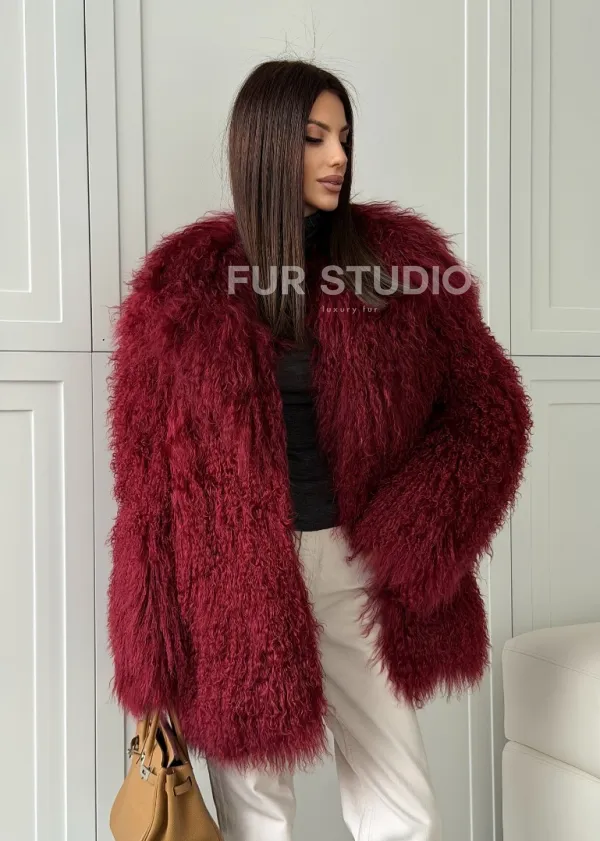 Шуба из ламы PREMIUM - бургунди 102814