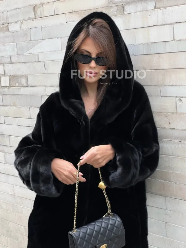 Шуба из меха норки SAGA FURS с капюшоном 100163