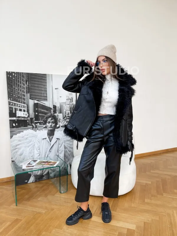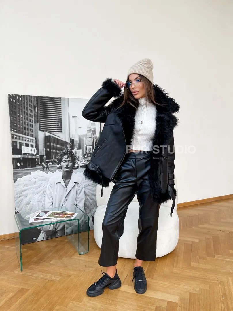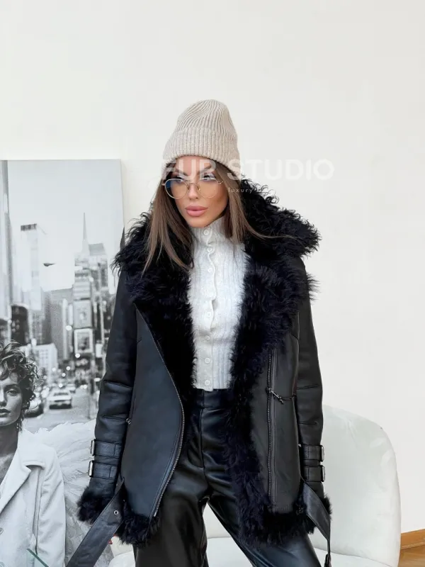 Стильная дубленка из натуральной овчины Тиградо 100169
