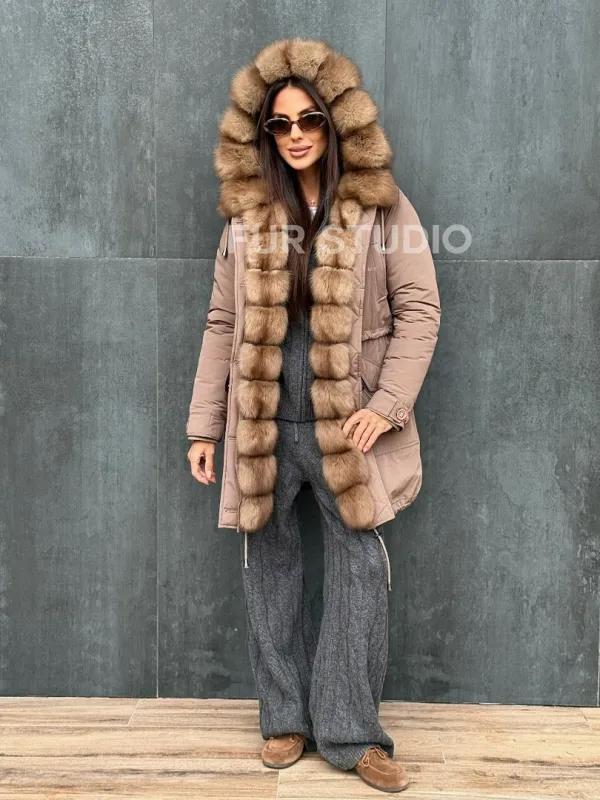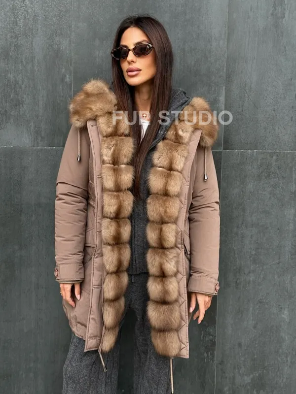 Женский пуховик с мехом куницы 102412